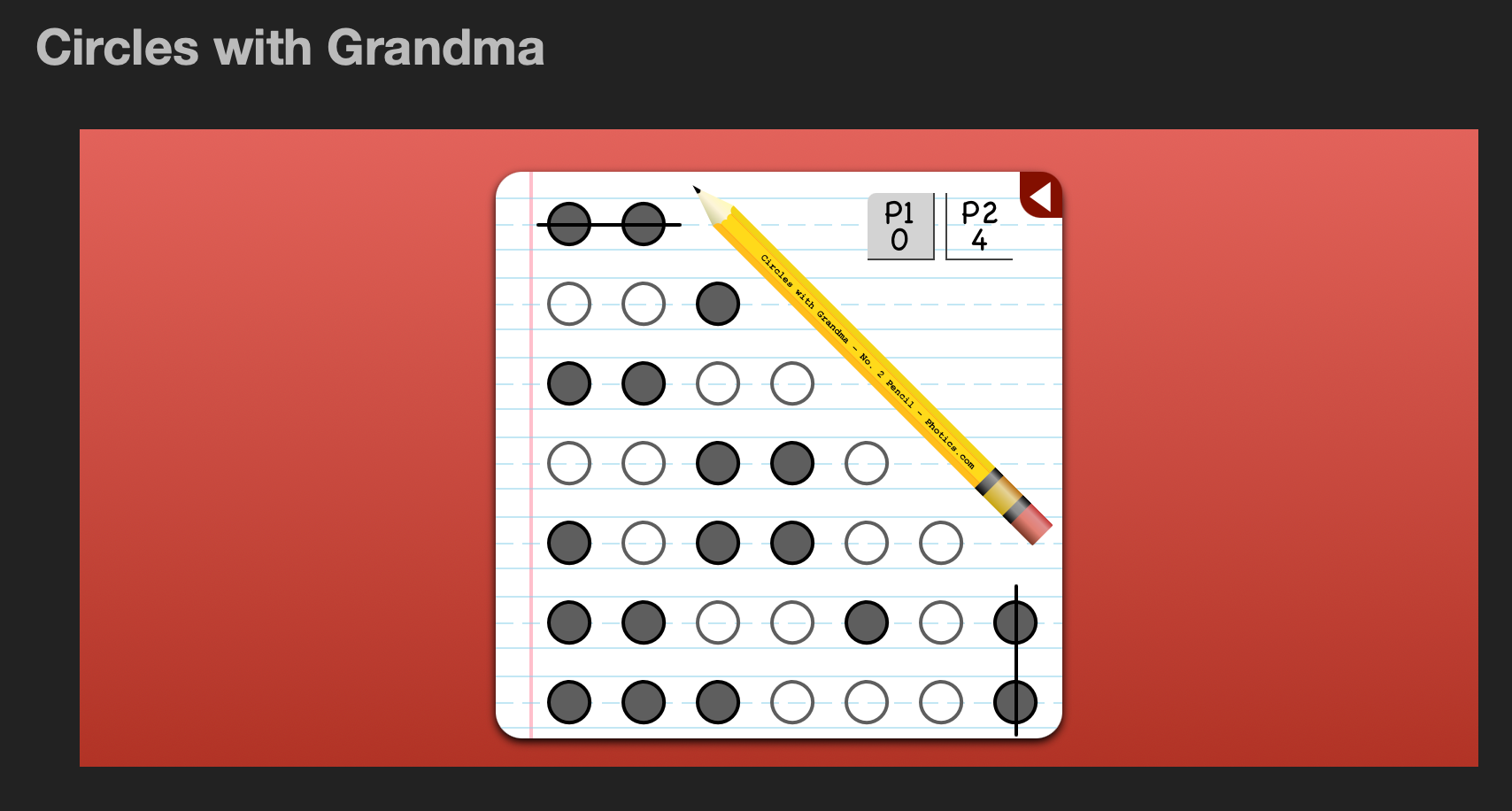 A completed row or column is a completed row or column. The person who completes the row gets all of those points. The game is similar to Tic-Tac-Toe. Even if X or O were in different colors — or not — it's still the same.