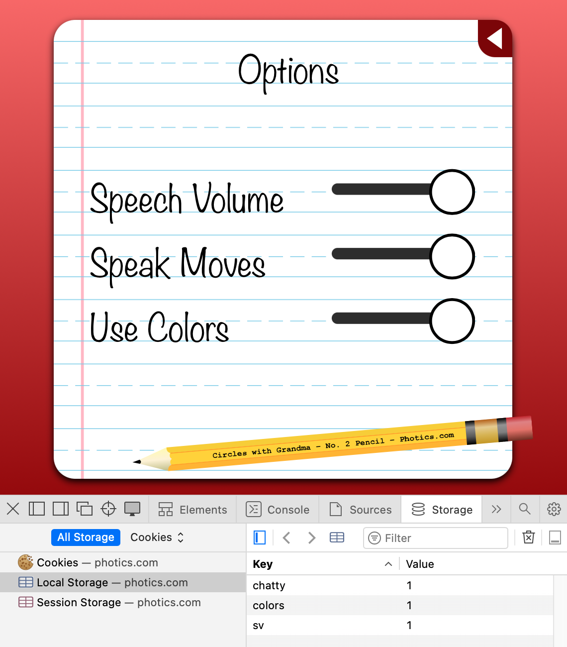 I think “sv” is also a sound volume setting that might be used with other Photics games, so I might have to revisit those values. I didn't realize that I might need a prefix for some values.
