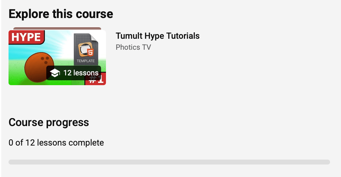 Where do you see the "explore this course" and course progress? If I show "view full course" it just shows an old style playlist screen, and clicking on the course just plays the first video.